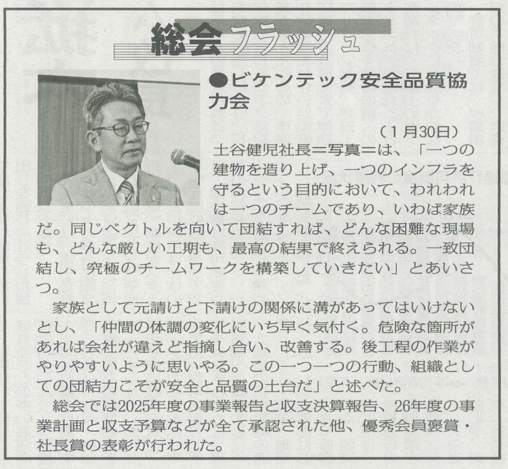 TOPICS2026年 ビケンテック安全品質協力会総会を終えて